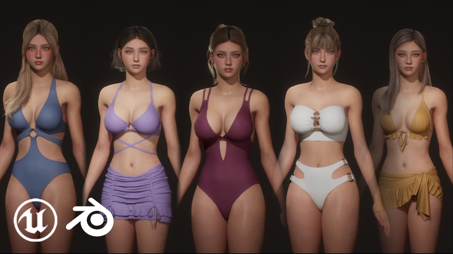 Modular, Customizable bikini girls Tina, Olivia, Sophia, Hazel and Ellie.