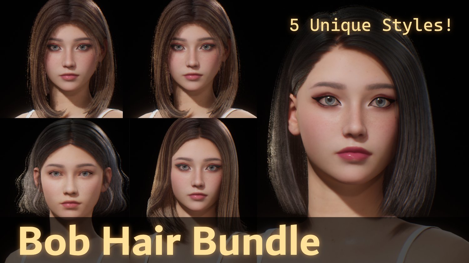 Rigged 3D hairstyles pack for Blender & Unreal Engine!